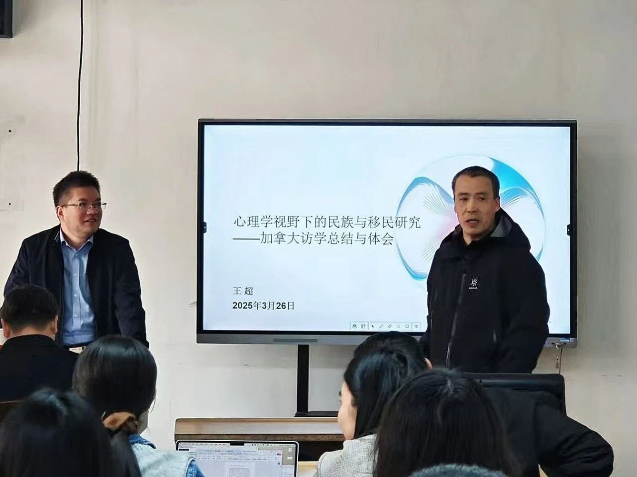 2025年3月26日14:30,中国西部边疆研究院师者周论第53讲在雁塔校区文科科研楼312教室举办。王超老师以《心理学视角下的民族与移民研究——加拿大访学总结与体会》为题,与师生们展开交流,研究院马强教授主持本次讲座。