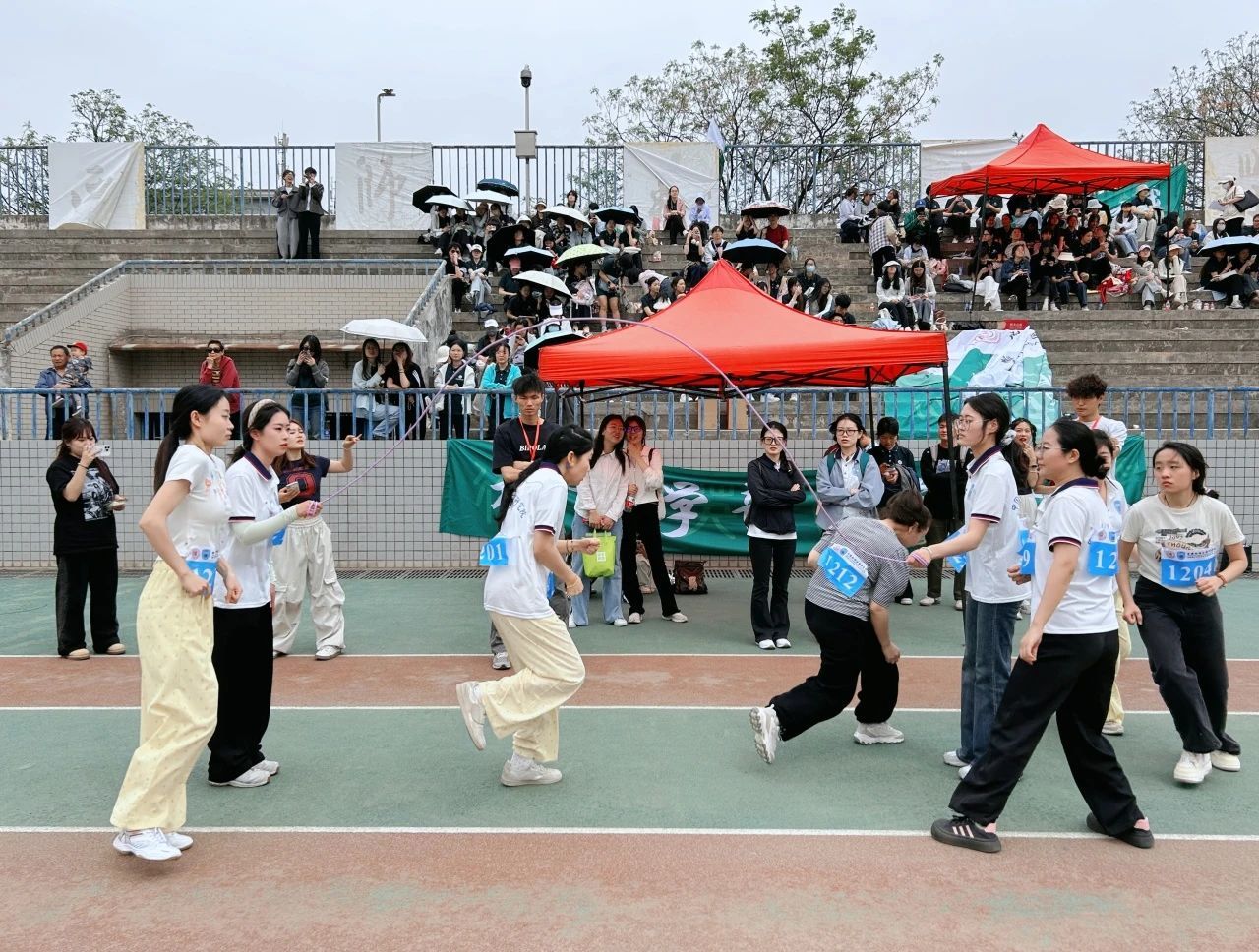 趣味项目更是精彩纷呈:在“仰卧起坐”中,同学们展现出惊人的耐力与毅力;“企鹅漫步”中,选手们以灵活的身姿完成挑战;“跳大绳”项目里,队员们节奏一致,展现出完美的团队协作;“一圈到底”考验着集体的智慧与配合,而“摸石过河”则让参赛者在平衡与速度中寻找最佳策略。