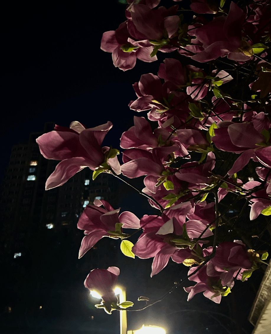 玉兰花以皎洁之姿在夜色中绽放,花瓣薄如蝉翼般舒展,像是在点燃清透的光。玉兰象征孤高品性,此刻它没有白天熙攘的追捧,在夜晚无人注目时盛开,恰似那些隐于市井的坚守者——在灯火通明的夜晚,仍以静默对抗喧嚣。
