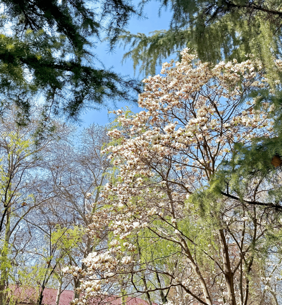 花是春天的信使,当玉兰花早早绽放在枝头时,意味着春天将临。镜头以花作为主角,快门按下时,整株花树都在逆光中震颤,仿佛无数振翅欲飞的白色信鸽,将冬日的遗书撕成碎片,撒向解冻的风中。