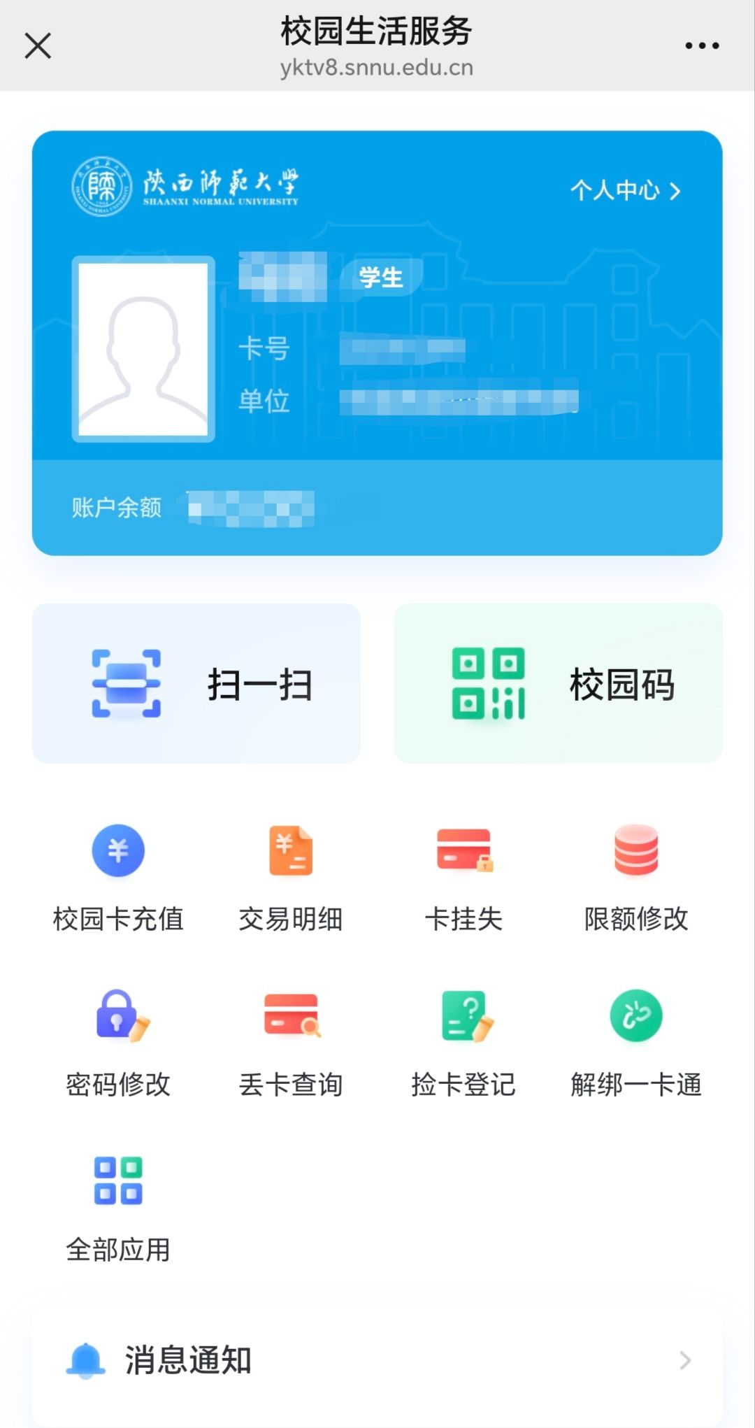 (2)注意记住校园卡的账户和密码哦,如若不慎忘记密码,也可以通过陕西师范大学信息化处公众号修改哦!